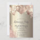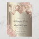 Elegant rose gold glitter drips, and balloons on a champagne background.