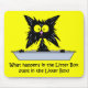 "What happens in the litter box, stays in the litterbox" Black cat cartoon with attitude in litterbox.