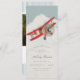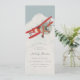 Get ready to take flight with this vintage style baby shower invitation! Against a light blue background, an adorable little red aeroplane soars above the clouds. With its charming hand-drawn style, this little aeroplane is sure to capture the hearts of your guests and set the tone for a fun and adventurous baby shower.