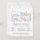 Pastel coloured circles of confetti sprinkles down on this cute baby shower design for a "sprinkle" in honour of the expecting mum. Perfect for second babies and when expecting a different gender than the first. Sweet colour scheme includes a palette of baby pastels in blue, orange, purple, green and pink, with a coordinating blue and white polka dot pattern on the back. Perfect for when she's expecting a bouncing baby boy!