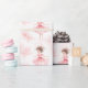 A watercolor pattern of a brunette little girl dancing ballet. Perfect for the little ballerina in your life!