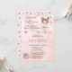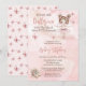 "A Sweet Little Ballerina Is On the Way & We're TUTU Excited!" cute ballerina and butterflies girl Baby Shower or Sprinkle design with pink alcohol and ink style pink background on front with a pink butterflies pattern over pale pink solid background on back.
