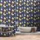 Little Bear Cute Moon Stars Planets Kids Pattern Wallpaper features cute whimsical bears accented with crescent moons, stars, planets and rainbows on a dark blue background. Perfect for kids bedrooms, nursery decor, playroom, home decor, office and party decor. Created by Evco Studio www.zazzle.com/store/evcostudio