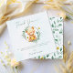 Celebrate your little one's birthday with this adorable thank you card! It features a sweet honey bear holding a jar of honey, surrounded by greenery. It's perfect for a boy's birthday party.
