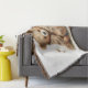 A quality printed throw has its advantages. This is a much finer weave throw than its loopier cousins, and though lighter, it is worth the investment for custom room accessorizing. The back is much prettier than the typical brown, and the fringe on the long sides very vivid, the selvage nicely done. Before photographing, I washed the throw in cold water, delicate, with a thicker woven throw the same size. On tumble dry low, this throw was dry in half the time as the other. This is a very practical quality if you use throws for furniture covers or to wrap up in frequently. The sleekness of the fabric makes it a great layer for accenting or protecting without the feeling of sitting on too much stuff. Perfect for napping or when you feel a light chill coming on. The color printing is beautiful and on this fabric, matched the design and color of my Photoshop image. This is an advantage for blending room fabrics and colors. The fringe on the short sides prints the colors from the design image and therefore varies from the side fringe. I streaked a white fractal line through the plaid pattern to give the illusion of weaving. This printed as crisp as an illusory thread, and put some white in the short side fringe, showing another advantage of print vs loomed- for artistic purposes, line lines, detail, and color integrity can be planned and preserved. My loomed throws have color limitations and more of a needlepoint texture. Print throws reproduce an exact image. The throw felt a little stiff straight out of the package, but this went away in the first delicate wash. Of course I searched the wash water for ink or bleeding and there was none.