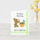 A cute design featuring a sweet teddybear holding a pink ice cream cone. A garden planter and a little blue bird sitting on the vines. Customise the message as desired.