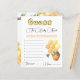Little Bee Baby Shower Guess the Baby Food Card.