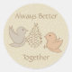 Little Beige Birdies at Feeder - Better Together. Classic Round Sticker