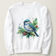 A very cute little blue bird perches on Christmas greens with red berries in a splatter paint style. Perfect sweatshirt for Christmas!