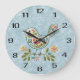 Beautiful Little Bird Floral Green Leaves Embroidery Wall Clock