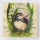 Little bird surrounded by flowers and greens within a modern clock edge design.