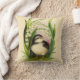 Pillow with a Little Bird with white and black colouring, like a finch or mountain chick-a-dee, surrounded by leaves, flowers, and grass. Great for Easter or just springtime!