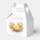 Little birdie hatching soon spring baby shower template favour box personalised baby shower favour boxes pair of cute yellow canary birds with a hatchling chick in a nest with spring blooms baby shower favours