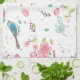 Little Birdie Pink and Blue Whimsical Girly Tea Towel