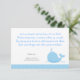 Perfect little enclosure cards! These can be used to ask guests to bring a book instead of a card, select menu or buffet items or ?? Click the customise button to create your own card. Contact us if you need help! Matches our "Little Blue Whale" Invitations and thank you notes.