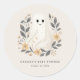 Little Boo Boho Ghost Halloween Baby Shower Classic Round Sticker features an adorably spooky ghost, surrounded by bohemian botanicals.