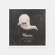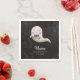 Cute halloween theme kid's birthday party paper napkin featuring an illustration of a ghost with a blue bow tie on a black chalkboard background. Customise this product by adding your child's name, age, and event date. Perfect for a boy's party in the fall.