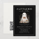 Little Boo Cute Ghost Bow Wildflowers Couples Shower Invitation - featuring an adorable ghost wearing an orange coquette bow. Ghost is surrounded by wildflowers. A QR code for Baby Registry is on the back of the invitation. Invitation is classic with a touch of cuteness. Perfect for your little boo's Baby Shower.