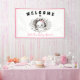 A little boo is almost due, funny Halloween Baby Shower banner in black & white and pink, with a cute peeking baby ghost. Easily personalise the text. - Kate Eden Art