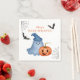 Adorable Halloween baby shower paper napkins to complement our “Little Boo Is Almost Due Baby Shower collection! This customisable design featuring a cute blue ghost sporting witch hat, bats, spider web, and a pumpkin illustrations, is perfect for your cute little boy on the way. Click on “personalise this template” to fill in your personalised details. Feel free to message me for any enquiries, I will be happy to help!
