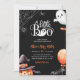 Get ready to shower the mum-to-be with spooky sweetness! This Little Boo Ghost Baby Shower Invitation features a charming ghost, glowing pumpkins, a witch’s hat, and festive orange accents all set against a classic black backdrop. With playful spiders and cobwebs sprinkled in, it’s the perfect mix of cute and creepy for an unforgettable Halloween-themed celebration. Great for October showers and perfect for those who love a little spooky fun!