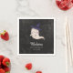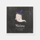 Cute halloween theme kid's birthday party paper napkin featuring an illustration of a ghost with a witch hat on a black chalkboard background. Customise this product by adding your child's name, age, and event date. Perfect for a girl's party in the fall.