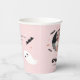 Cute pastel pink Halloween spooky one first birthday featuring your child's photo. Adorable ghost, bats and pumpkin illustration design paper cups for a little boo first birthday.