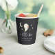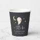 Add a playful touch to your fall celebration with these Halloween-themed baby shower paper cups from the A Little Boo collection by Redwood & Vine Design Co. The design features a cheerful watercolor ghost, crescent moon, and stars on a deep black background, with the phrase “a little boo is almost due” and a customisable line of event text. Perfect for serving beverages at spooky baby showers, Halloween parties, or October events.