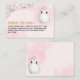 Guests can bring their favourite storybook with a loving note inside, creating a keepsake for years to come. Designed for a girl’s Halloween baby shower, this enclosure card blends festive fall elements, pink ghost illustrations, and soft seasonal tones to match your “Little Boo Is Almost Due” invitation suite.