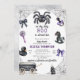 Little Boo Itsy Bitsy Spider Halloween Baby Shower Invitation - A little boo is almost due! This adorable and super cute baby shower invitation is the perfect invitation for a Halloween baby shower. Featuring a cute black spider with spiderweb accents and adorable baby items with spiderweb designs on them including coquette bows, a baby rattle, a baby bottle, an adorable baby wagon, a rubber ducky, a rocking horse and a baby pacifier. In dark purple and black colour palette this baby shower invite is perfect for the gothic mum to be or for a couple shower who love goth and all things spooky. Available as an editable printable baby shower invitation or as an instant digital download, send it via email, text or social media. Set the tone for a spooky, and cute Halloween baby shower with this itsy bitsy spider baby shower invitation.