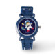 This fun watch features a sweet vector illustration of a boy astronaut, a yellow star, and a blue planet on a dark blue background and can be personalised with your child's name, monogram, initial, or any text of your choice for a perfect custom gift.