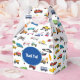Celebrate the birthday of your little boy with a custom pattern of some of his favorite vehicles -- fire trucks, police cars, helicopters and planes, trains, taxis, construction vehicles, and more! This fun thank you favor box adds an extra special personalized touch to your little one's birthday party celebration. Add Thank You on top of the blue background (or edit text per your preference).