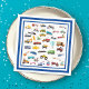 Celebrate the birthday of your little boy with a custom pattern of some of his favourite vehicles surrounded by blue -- fire trucks, police cars, helicopters and planes, trains, taxis, construction vehicles, and more! This fun paper napkin adds an extra special personalised touch to your little one's birthday party celebration.