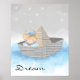 Lovely little boy's room decor wall poster artwork of a young boy in a newspaper hat boat under the stars. Dream in blue text can be personalised to read what you want.