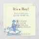 Personalise the background colour and information this retro little boy on a rocking chair theme baby shower invitation. Use the back for directions or leave black. It's up to you!