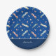 Little Boy Racing Car Watercolor Pattern on Blue Paper Plate