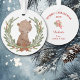 This is an adorable Christmas ornament for grandparents to give to a special grandchild, but it can be easily customised as a gift for anyone. The front of the ornament has a watercolor image of a little brown bear sitting within a pine needle, holly, and red berry wreath. The back of the ornament has your custom text in red. The text fields are separated by a small candy cane and holly bouquet. Easily change the text to anything you'd like!