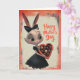 A sweet and stylish Mother’s Day card featuring an elegant baby bunny dressed in her fanciest outfit, proudly holding a heart-shaped box of chocolates for Mama. Perfect for moms who adore adorable art with a touch of whimsy. Soft painterly textures and irresistible bun charm make this a gift-worthy keepsake for any mother figure.