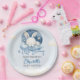Celebrate the arrival of your little bunny with our boho-style design featuring a cute bunny sleeping on clouds in shades of navy and light blue, all set against a background of hand-painted watercolor clouds. The design features modern, minimalist typography in navy and black, and a striped pattern in a blue tone on the back. The design can be filled with your celebration details. Don't hesitate to purchase this cute bunny-themed product for a boy's baby shower.