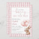 This charming baby shower invitation features a cute little baby bunny holding balloons and a pink gingham background. Designed by Thisisnotme©