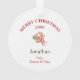 This is an adorable Christmas ornament for grandparents to give to a special grandchild, but it can be easily customised as a gift for anyone. The front of the ornament has a watercolor image of a little grey bunny rabbit sitting within a pine needle, holly, and red berry wreath. The back of the ornament has your custom text in red and green. The text fields are separated by a small candy cane and holly bouquet. Easily change the text to anything you'd like!