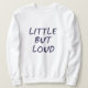 Cool and cute text design showing the quote "little but loud. A perfect match for kids as well as for parents.