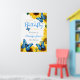 Get ready for an elegant baby girl welcome sign adorned with vibrant yellow sunflowers and stunning bright cobalt blue butterflies. Experience the beauty of stained glass with a mesmerising effect that brings the butterflies to life. The calligraphy script adds a touch of elegance and rustic sophistication. Don't miss out on this enchanting invitation that promises to make a statement and first impression when your guests arrive! See the collection for more matching items.