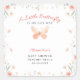 Transport your guests to a world of whimsy with an enchanting illustration featuring coral pink and pastel teal wildflowers, showcasing a beautiful coral pink butterfly with gold sprinkles (digital effects). Set within a square frame embellished with more delicate, stylised wildflowers and modern calligraphy, this baby girl shower personalised sticker is a perfect fit for a springtime celebration, Easter happiness, a summer garden fête, or a charming picnic-themed baby shower.