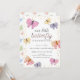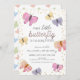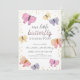 This cute "our little butterfly is turning one" girl's birthday invitation features a white background with butterflies framed by faux gold doodled dots. The reverse side features a white background with butterfly patterns in pastel colours. Personalise it for your needs. You can find matching products at my store.