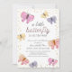 This cute "a little butterfly is on the way" girl virtual/online/zoom/facebook baby shower invitation features a white background with butterflies framed by faux gold doodled dots. The reverse side features a white background with butterfly patterns in pastel colours. Personalise it for your needs. You can find matching products at my store.
