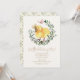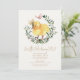 This cute "little chick" girl's 1st/first birthday invitation features a little chick, and a pair of butterflies surrounded by a greenery wreath. The reverse side features a tea green background with floral patterns. Personalise it for your needs. You can find more bunny products at my store.