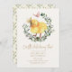 This cute "little chick" girl's birthday invitation features a little chick, and a pair of butterflies surrounded by a greenery wreath. The reverse side features a tea green background with floral patterns. Personalise it for your needs. You can find more bunny products at my store.