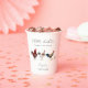 Rustic and boho farm theme baby shower paper cup featuring illustration of chickens and a chick. The text says "a little chick is on the way."