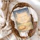 This sweet farm-themed baby shower design features a gentle storybook illustration of a mother hen with her fluffy chicks, nestled among wildflowers, greenery, and rustic countryside details. Soft watercolor textures and warm earthy tones create a cozy, timeless feel that’s perfect for a charming spring or rustic baby shower. A lovely choice for celebrating a little one with a calm, pastoral aesthetic.